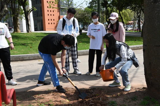 师生凭券领取肥料、工具,给指定的丝木棉施肥、培土、浇水,并系上心愿卡,“培根铸魂”守护校园丝木棉。全校各个角落,师生分区合力拔除杂草,清理枯枝、树叶、垃圾等杂物,并安排专人集中清运。大家卷袖而上,干劲十足,以实际行动助力校园美化绿化。各个环节衔接有序,互动融洽,充分发扬广软人团结、互助的精神。活动现场还展出校园种植花木的分布信息,包括花的名称、习性、种植区域、花期和最佳观赏时间等,与此同时举办“广软树洞”“许愿树”等活动,师生踊跃参与,纷纷在展板上贴上“心愿”。
