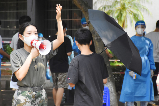今天是广州市教育系统核酸检测专场,这也是自5月4日以来,学校第3次完成全员核酸检测采样工作。在核酸采样现场,志愿者朱烨桦表示,“引导师生有序进行核酸采样的任务不算繁杂,但却能让我收获成就感和满足感。有时还在睡梦中,一个电话打来,马上起床去做志愿者,我很骄傲,我是学生志愿者中的一员,在疫情面前,我虽然不能像医护人员一样奋战在一线,但我也用实际行动挥洒青春汗水,诠释青春风采。”