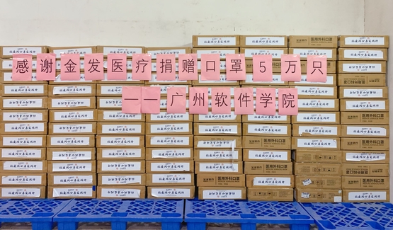 在张强校长的沟通协调下,金发医疗立即调拨到一批医用防护口罩,发往广州软件学院。与此同时,总务基建处工作人员积极了解募捐流程,联系物资运输的车辆,办理通行证明、捐赠签收证明等文件,为抗疫物资顺利发运提供保证。