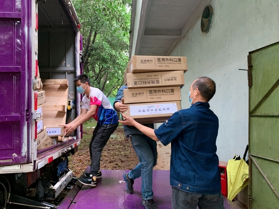 本网讯 5月7日下午15:30,一辆满载防疫物资的卡车从清远缓缓驶入广州软件学院,这是金发医疗向学校捐赠的5万只爱心口罩,为助力疫情防控,贡献一份力量。