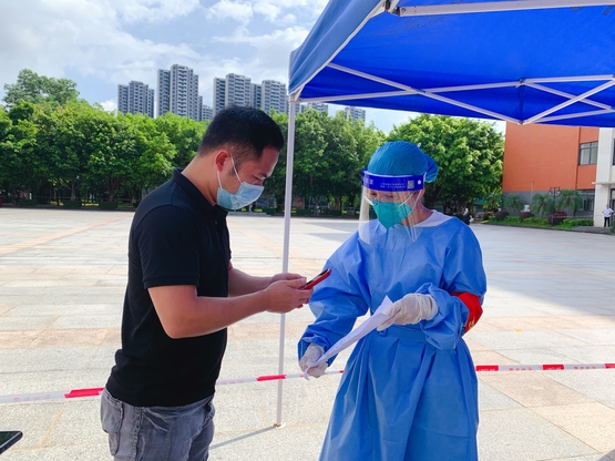 扫码测温、队伍引导、定点分流、信息录入……从早上7时30分到中午12点,教职工党员志愿者们用实际行动,在炎炎烈日下始终坚守岗位。不少教工党员是第2次或第3次参加志愿服务工作,始终以饱满的热情为学校疫情防控工作贡献着自己的力量,充分展现了我校党员的风采和责任担当。
